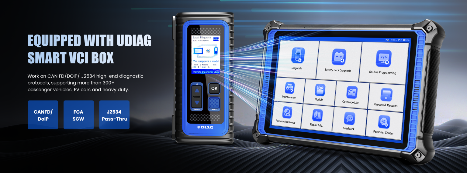 The UDIAG X-95 PRO is a professional-grade OE-level full system diagnostic tool designed for modern workshops. Powered by a quad-core Android tablet with a 10.1-inch HD touchscreen and dual Wi-Fi, it delivers fast, intelligent diagnostics across 120+ passenger vehicles, with optional support for 70+ EVs and 150+ heavy-duty vehicles. It supports CANFD, DoIP, and J2534 protocols, offering full-system diagnostics, bi-directional tests, and powerful online programming. With 41+ maintenance functions and optional modules like ADAS, TPMS, video scope, and oscilloscope, the X-95 PRO full system diagnostic tool is the ideal all-in-one solution for efficient, advanced vehicle diagnostics.