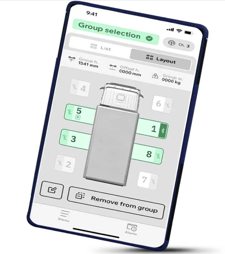 App-based configuration for columns groups, height settings and operation layout.